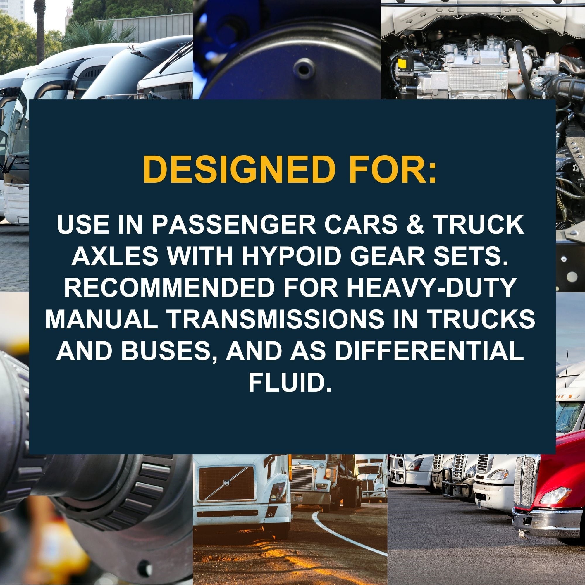 This 80W-90 gear oil is ideal for manual transmissions, differentials, transfer cases, and gearboxes across a wide range of vehicles and equipment.