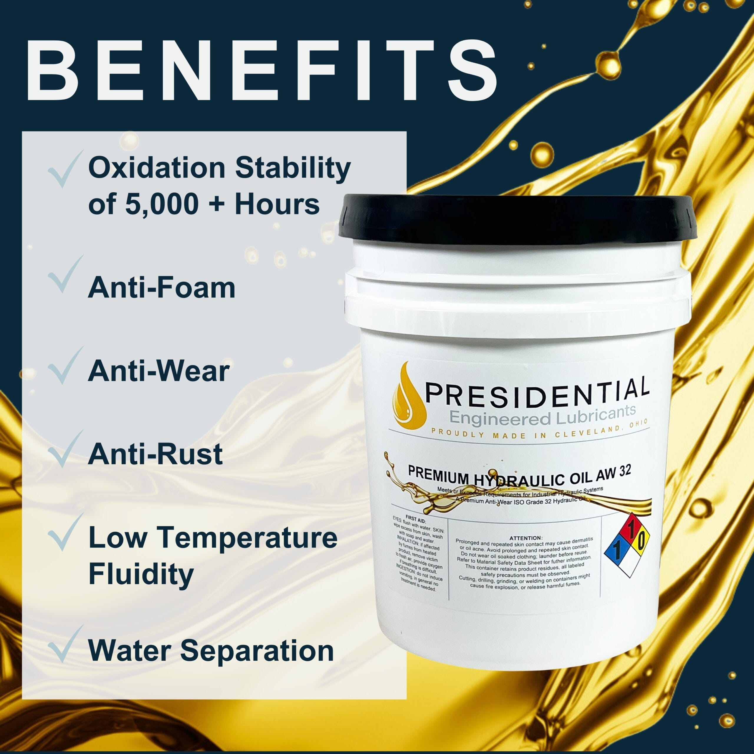 This product reflects our commitment to American-made quality and industrial innovation. When you need dependable protection and peak performance from your zinc-based hydraulic oil, make Presidential your first choice.
