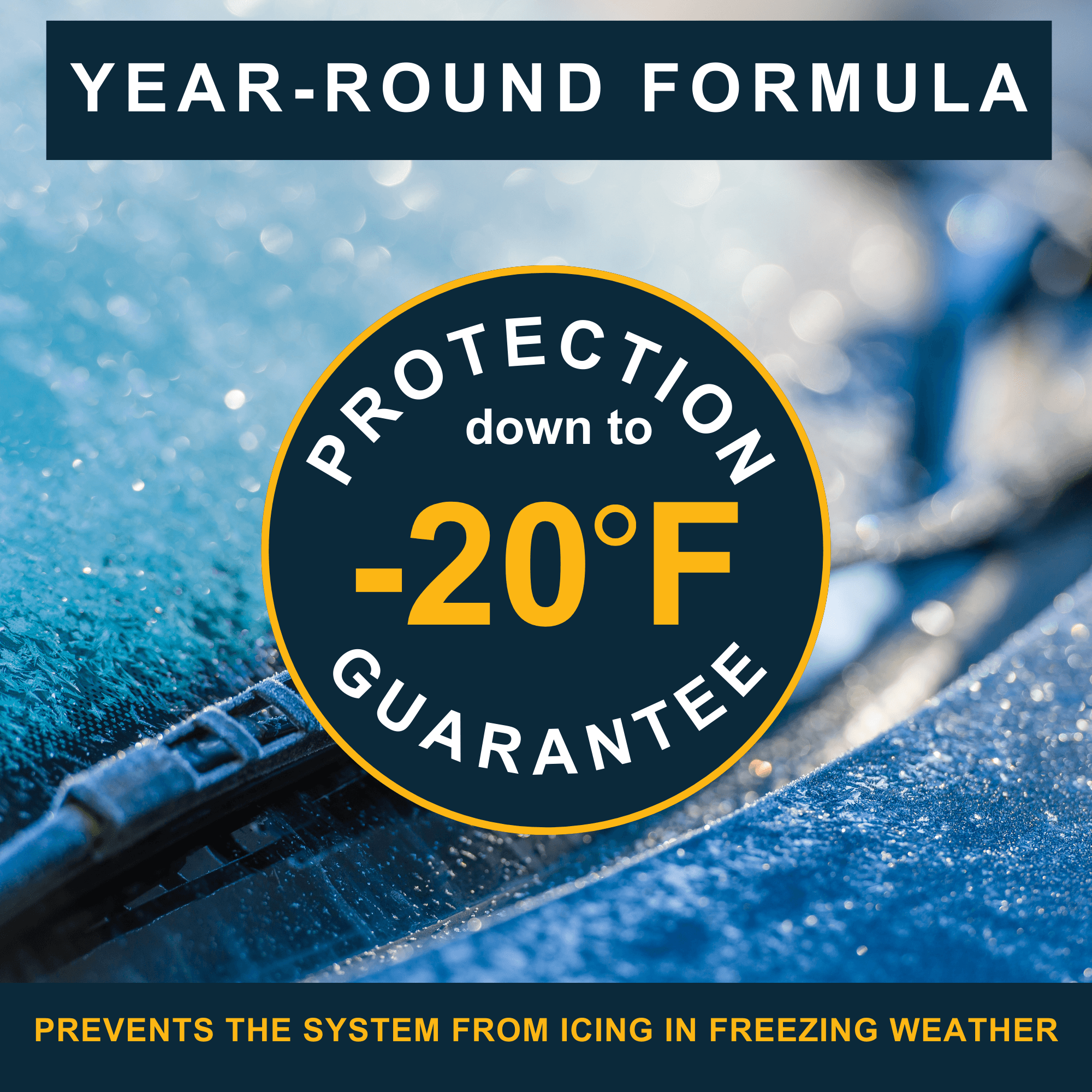 Designed to cut through tough grime, road salt, bug residue, and stubborn film, this fluid is tough on contaminants yet gentle on your vehicle’s finish. It leaves no haze, film, or streaks behind, helping to maximize visibility and improve safety in rain, sleet, snow, or bright sunlight. In fact, it performs consistently across all seasons—thanks to a robust formulation that offers freeze protection down to -20°F while remaining safe for use during warmer months.